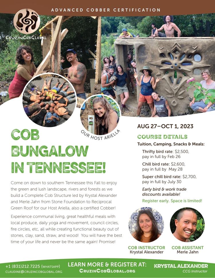 Then earlier this year, I joined fellow Brazilian cobber Paula Carneiro to co-teach a 5-week full build workshop in North Carolina, where we completed a beautiful 175 sq ft “cobbin” for hosts Molly and Daniel, above. I am so excited to further my CCG journey in Tennessee, where I will be the Main Instructor assisted by my student and colleague, Sara Crippen. Vamos!